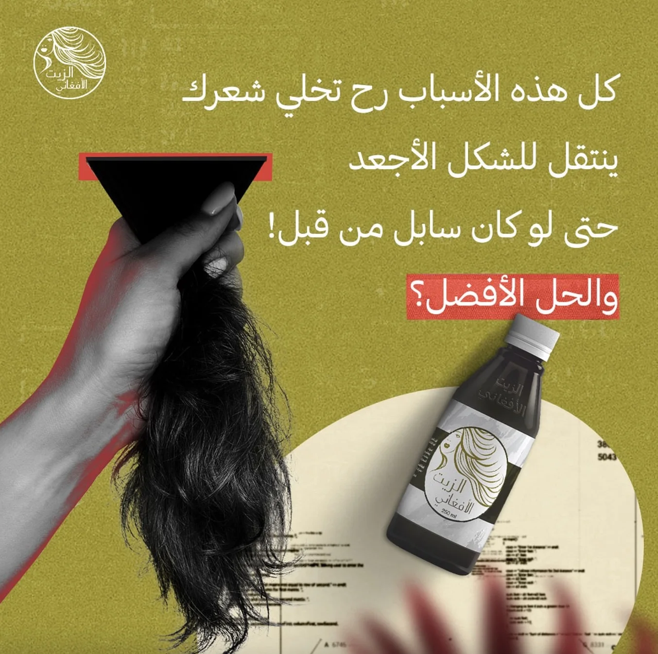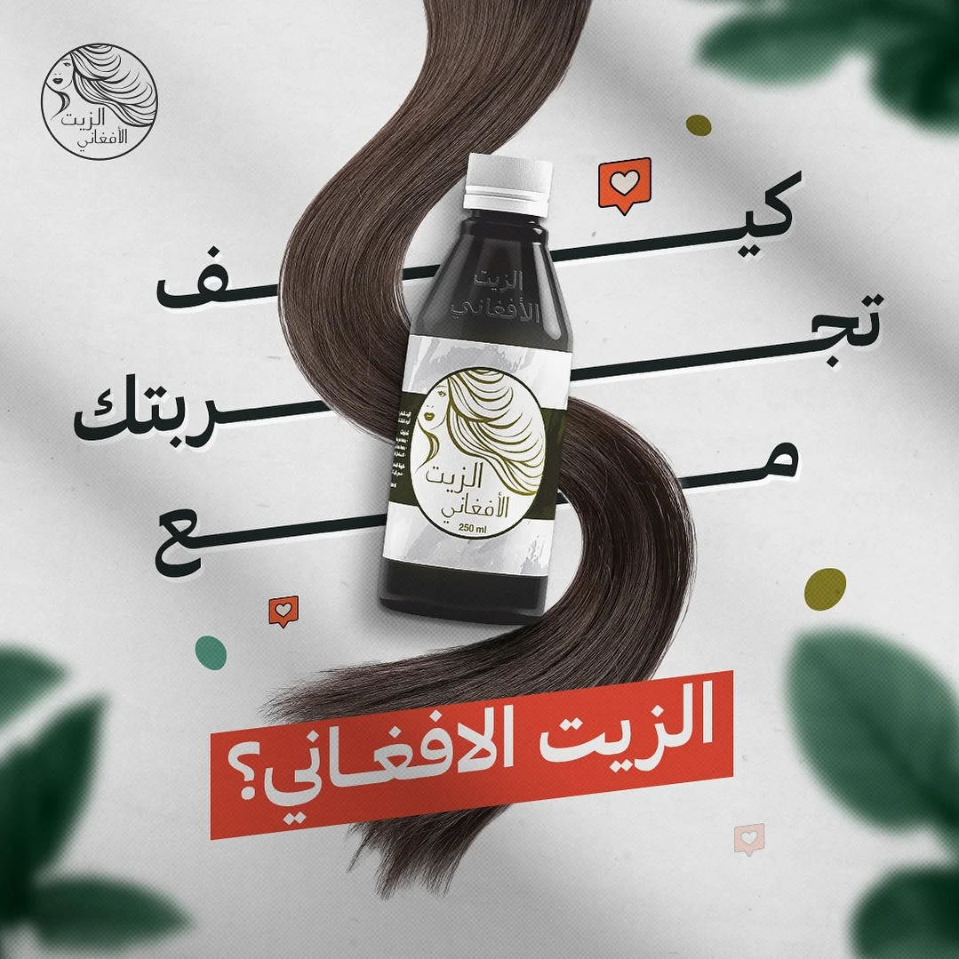 قدّمي لشعركِ العناية الفائقة مع الزيت الأفغاني الأصلي، الزيت الطبيعي 100% المستوحى من أسرار الجمال الأفغاني التقليدي، والمصنوع من خلاصة الزيوت الطبيعية النادرة التي تعيد لشعركِ قوته، صحته، وجماله الطبيعي.